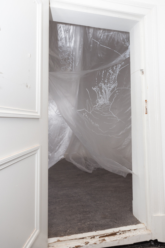 Installation works by Thom Driver, Cécile Tafanelli and Roman Tkachenko