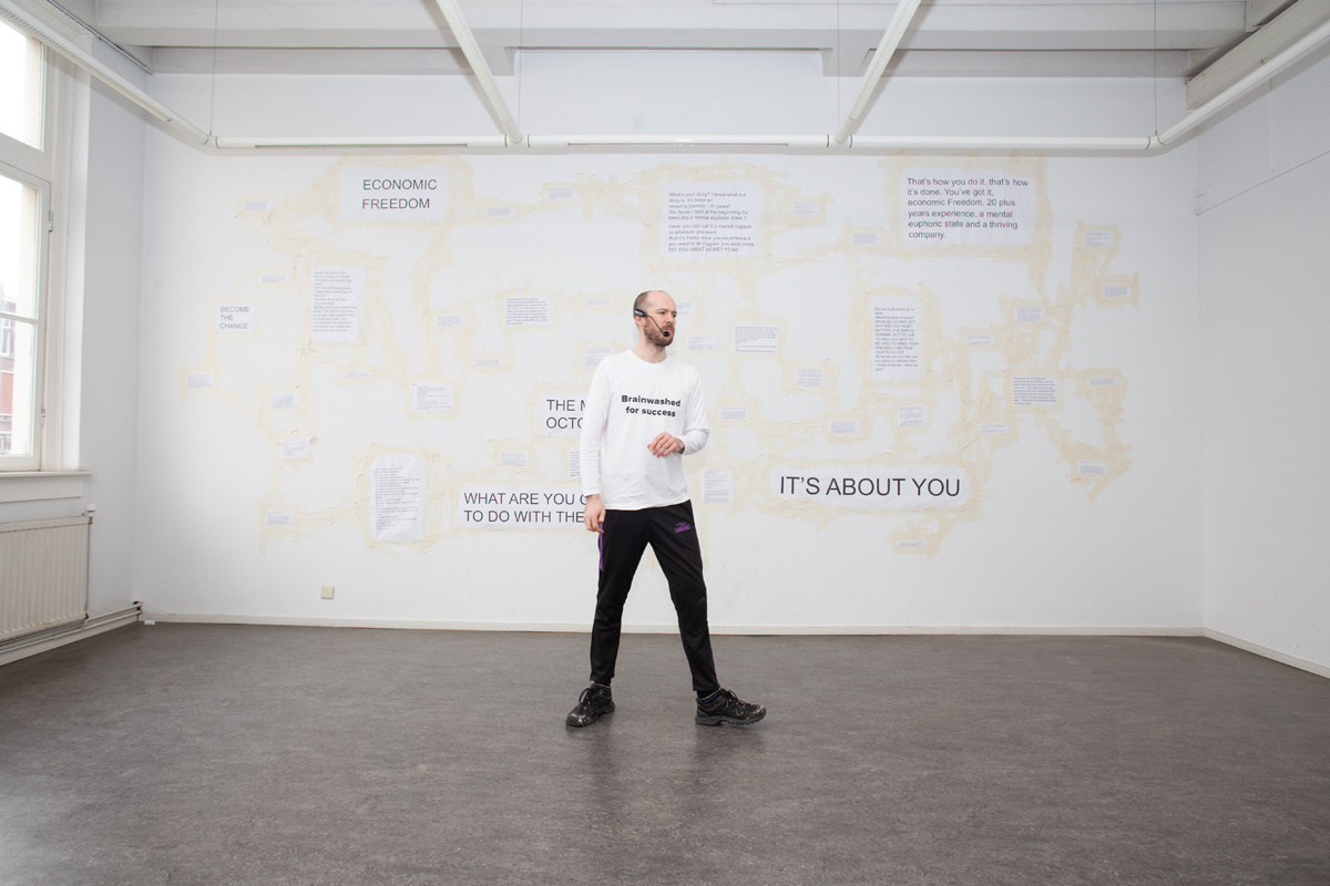 JR Ridinger is the CEO and founder of Market America, a multi level marketing company which has been accused of being a pyramid scheme and racketeering. This performance continues a series of performances exploring the relationship between debt, morality and subjectivity.